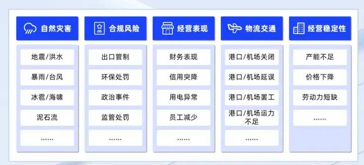 为处理保守手段难以全面、精确监测供应商风险的问题,启信慧眼沉磅升级供应链风险办理方案,监测维度普遍涵盖地动、洪水、暴雨等天然灾祸,出口管制、环保惩罚等合规风险,信用突降、员工削减等运营情况,口岸/机场封闭、口岸/机场运力不脚等物流交通相关风险,以及产能不脚、价钱下降等预示运营不变性变化的负面消息,帮力企业及时发觉供应商潜正在风险并核实,避免供应中缀。